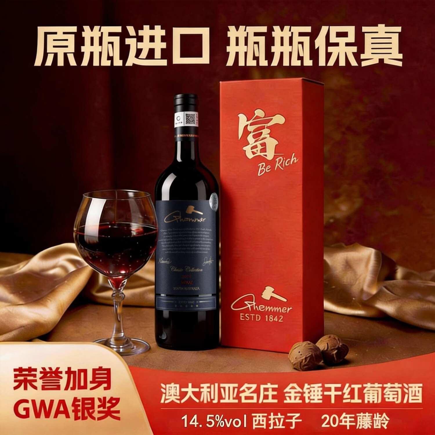 GHAMMER小金锤经典西拉子干红葡萄酒 澳大利亚原瓶进口 高档红酒商务送礼 单支礼袋/1瓶装
