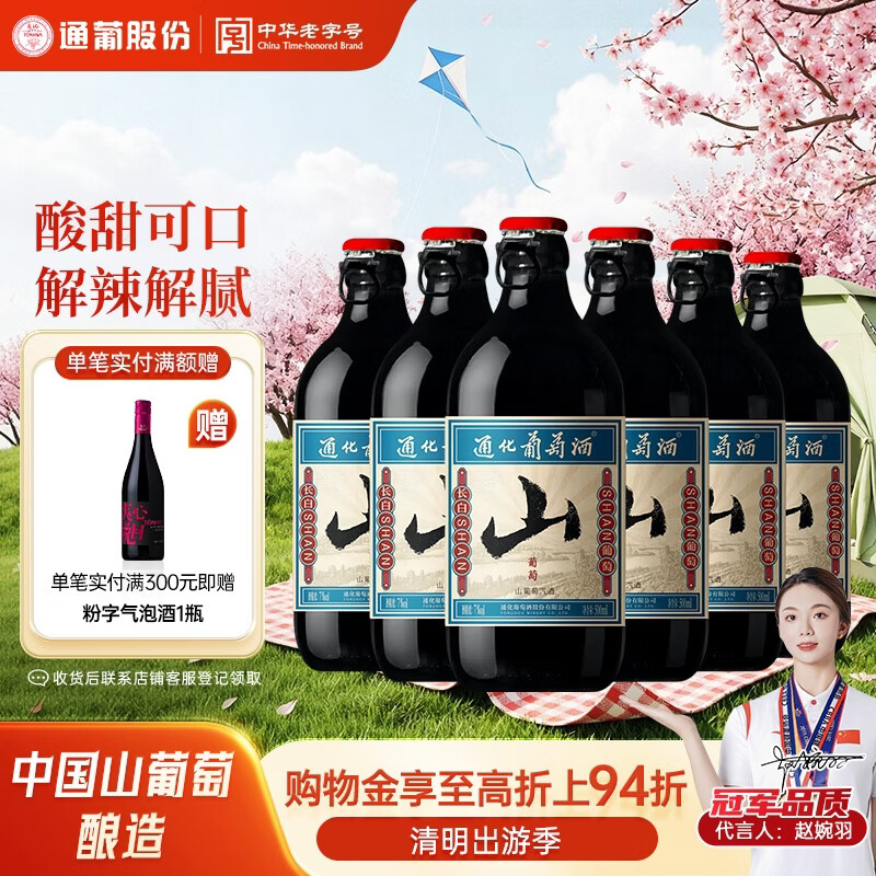 通化山葡萄气泡酒7度起泡酒500ml*6整箱装葡萄酒红酒果酒 微醺送礼
