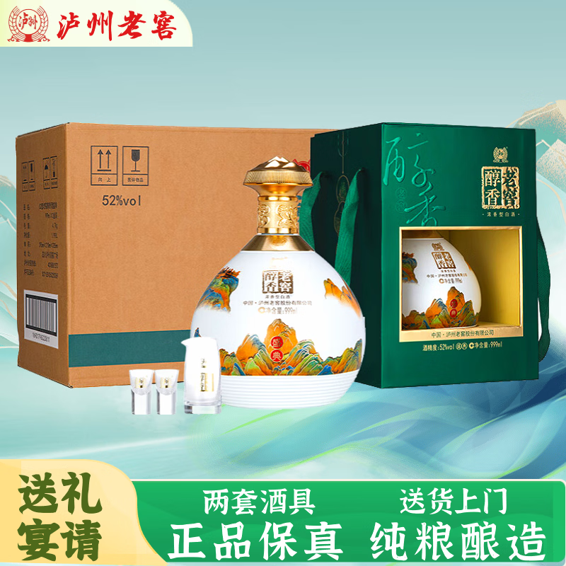 泸州老窖老窖醇香盛典52度浓香型白酒整箱礼盒京东自营送礼礼品999ml*2坛