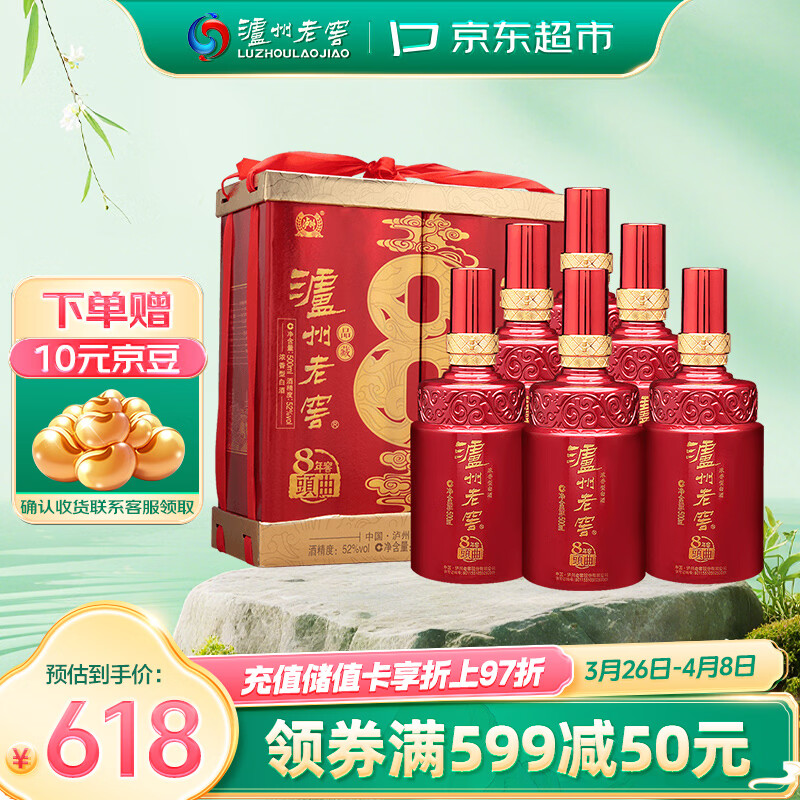 泸州老窖 八年窖头曲 品藏 浓香型白酒 52度 500ml*2*3 礼盒整箱