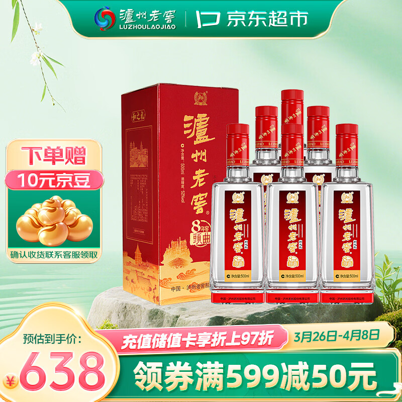 泸州老窖 八年窖头曲 和之礼浓香型白酒 52度500ml*6瓶整箱