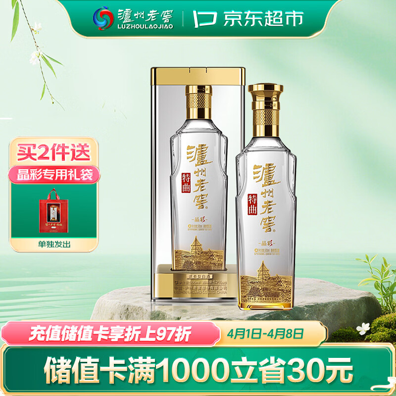 泸州老窖 特曲晶彩 浓香型 高度白酒 52度500ml单瓶 盒装 纯粮自饮