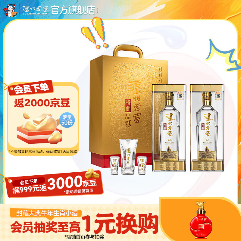 泸州老窖特曲晶彩 浓香型白酒 节日送礼 52度 500mL 2瓶 精彩时刻礼盒