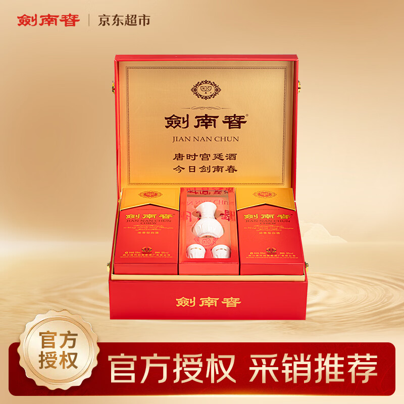 剑南春双支礼盒【聚会宴请送礼】水晶剑南春 浓香型 高度白酒 52度 500mL 2瓶 礼盒装含玻璃酒具