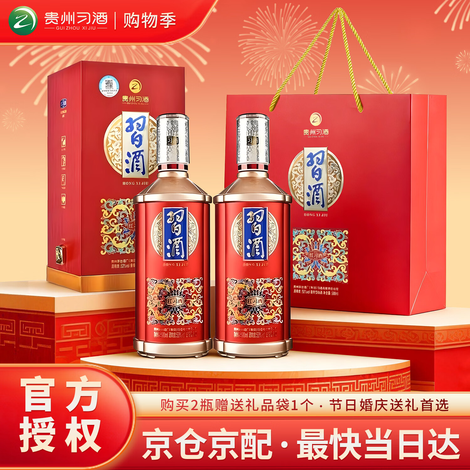习酒经典黑金 礼盒送礼 酱香型白酒 53度 500ml*2瓶 贵州习酒窖藏