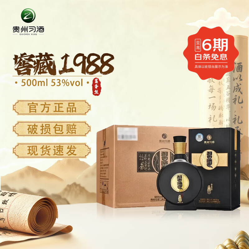 习酒贵州习酒窖藏1988 习酒君品 酱香型白酒 商务宴请 送礼【喜酒】 53度 500mL 6瓶 习酒窖藏1988【原箱】